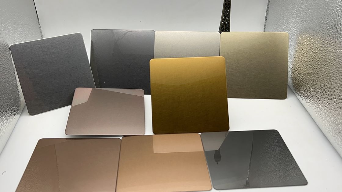 PVD kolorowe blachy ze stali nierdzewnej są dostępne w szerokim zakresie kolorów.W celu uzyskania szerokiej gamy kolorów wykorzystuje się różne procesy i stopów.