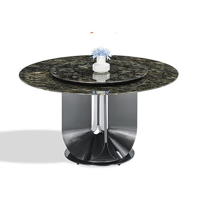 Luksusowy stół jadalniany ze stali nierdzewnej z obrotowym blatem ze sztucznego kamienia